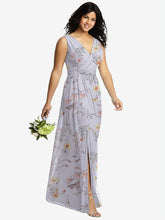 【NEW】【STYLE: 2894】ノースリーブ ドレープ シフォン マキシ ドレス 前面 スリット【COLOR: Butterfly Botanica Silver Dove】【SIZE: 00-30W】