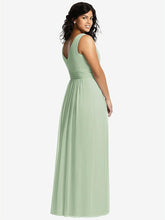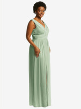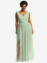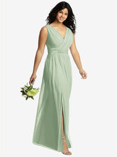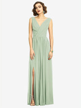 【NEW】【STYLE: 2894】ノースリーブ ドレープ シフォン マキシ ドレス 前面 スリット【COLOR: Celadon】【SIZE: 00-30W】