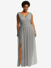 【NEW】【STYLE: 2894】ノースリーブ ドレープ シフォン マキシ ドレス 前面 スリット【COLOR: Chelsea Gray】【SIZE: 00-30W】