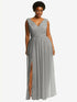Lux Chiffonで作られたこのフルレングスのVネックドレスは、流れるドレープネックリンラインのディテールを備えており、その前後のスカートにわずかなシラーリングが特徴です。スリットフロントスカートは、大胆でスパイシーなタッチに追加されます。