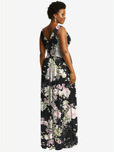 【NEW】【STYLE: 2894】ノースリーブ ドレープ シフォン マキシ ドレス 前面 スリット【COLOR: Noir Garden】【SIZE: 00-30W】