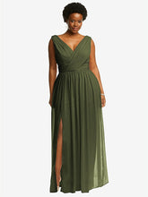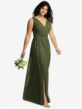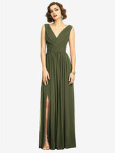 【NEW】【STYLE: 2894】ノースリーブ ドレープ シフォン マキシ ドレス 前面 スリット【COLOR: Olive Green】【SIZE: 00-30W】