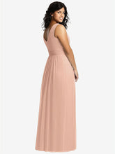 【NEW】【STYLE: 2894】ノースリーブ ドレープ シフォン マキシ ドレス 前面 スリット【COLOR: Pale Peach】【SIZE: 00-30W】