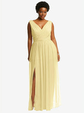 【NEW】【STYLE: 2894】ノースリーブ ドレープ シフォン マキシ ドレス 前面 スリット【COLOR: Pale Yellow】【SIZE: 00-30W】