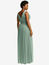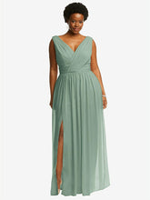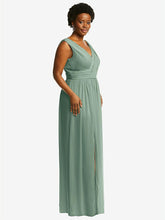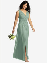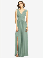 【NEW】【STYLE: 2894】ノースリーブ ドレープ シフォン マキシ ドレス 前面 スリット【COLOR: Seagrass】【SIZE: 00-30W】