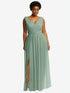Lux Chiffonで作られたこのフルレングスのVネックドレスは、流れるドレープネックリンラインのディテールを備えており、その前後のスカートにわずかなシラーリングが特徴です。スリットフロントスカートは、大胆でスパイシーなタッチに追加されます。