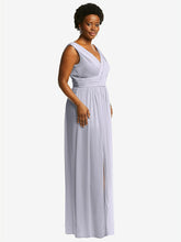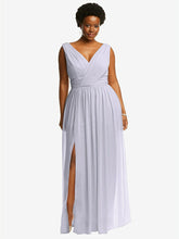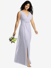 【NEW】【STYLE: 2894】ノースリーブ ドレープ シフォン マキシ ドレス 前面 スリット【COLOR: Silver Dove】【SIZE: 00-30W】