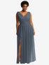 Lux Chiffonで作られたこのフルレングスのVネックドレスは、流れるドレープネックリンラインのディテールを備えており、その前後のスカートにわずかなシラーリングが特徴です。スリットフロントスカートは、大胆でスパイシーなタッチに追加されます。