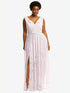Lux Chiffonで作られたこのフルレングスのVネックドレスは、流れるドレープネックリンラインのディテールを備えており、その前後のスカートにわずかなシラーリングが特徴です。スリットフロントスカートは、大胆でスパイシーなタッチに追加されます。