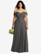 【NEW】【STYLE: 2970】オフショルダー ドレープ シフォン マキシ ドレス【COLOR: Caviar Gray】【SIZE: 00-30W】