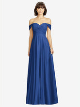 【NEW】【STYLE: 2970】オフショルダー ドレープ シフォン マキシ ドレス【COLOR: Classic Blue】【SIZE: 00-30W】