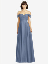 【NEW】【STYLE: 2970】オフショルダー ドレープ シフォン マキシ ドレス【COLOR: Larkspur Blue】【SIZE: 00-30W】