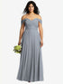 【NEW】【STYLE: 2970】オフショルダー ドレープ シフォン マキシ ドレス【COLOR: Platinum】【SIZE: 00-30W】
