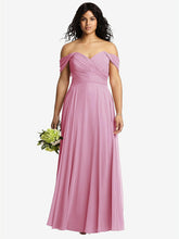 【NEW】【STYLE: 2970】オフショルダー ドレープ シフォン マキシ ドレス【COLOR: Powder Pink】【SIZE: 00-30W】