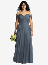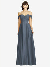 【NEW】【STYLE: 2970】オフショルダー ドレープ シフォン マキシ ドレス【COLOR: Silverstone】【SIZE: 00-30W】