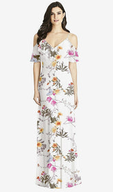 【NEW】【STYLE: 3020】フリル コールドショルダー シフォン マキシ ドレス【COLOR: Butterfly Botanica Ivory】【SIZE: 00-30W】