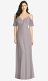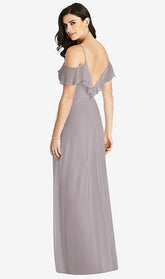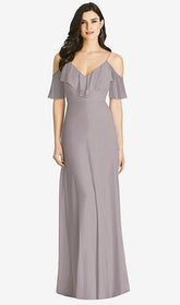 【NEW】【STYLE: 3020】フリル コールドショルダー シフォン マキシ ドレス【COLOR: Cashmere Gray】【SIZE: 00-30W】