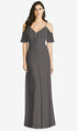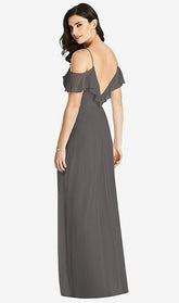 【NEW】【STYLE: 3020】フリル コールドショルダー シフォン マキシ ドレス【COLOR: Caviar Gray】【SIZE: 00-30W】