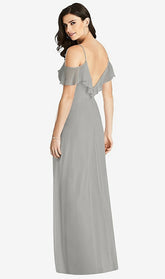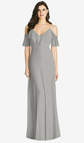 【NEW】【STYLE: 3020】フリル コールドショルダー シフォン マキシ ドレス【COLOR: Chelsea Gray】【SIZE: 00-30W】
