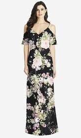 【NEW】【STYLE: 3020】フリル コールドショルダー シフォン マキシ ドレス【COLOR: Noir Garden】【SIZE: 00-30W】