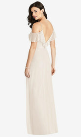 【NEW】【STYLE: 3020】フリル コールドショルダー シフォン マキシ ドレス【COLOR: Oat】【SIZE: 00-30W】