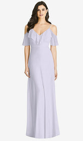 【NEW】【STYLE: 3020】フリル コールドショルダー シフォン マキシ ドレス【COLOR: Silver Dove】【SIZE: 00-30W】