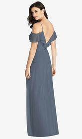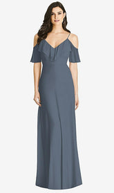 【NEW】【STYLE: 3020】フリル コールドショルダー シフォン マキシ ドレス【COLOR: Silverstone】【SIZE: 00-30W】