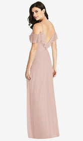 【NEW】【STYLE: 3020】フリル コールドショルダー シフォン マキシ ドレス【COLOR: Toasted Sugar】【SIZE: 00-30W】