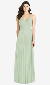 このフルレングスのラックスシフォンドレスには、姿を増やすドレーションのラップボディスとフリルのディテールが魅力的なオーラを提供します。 Vネックラインとの腰のコントラストでロマンチックな逆Vスパゲッティストラップは、見事な外観を提供します。修正されたサークルスカートを備えたシルエットは、バラペアの魅力の縮図です。