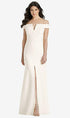 【NEW】【STYLE: 3038】オフショルダー ノッチ トランペット ガウン 前面 スリット【COLOR: Ivory】【SIZE: 00-30W】
