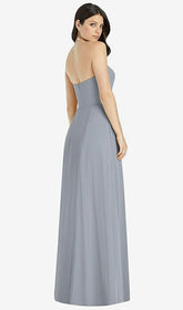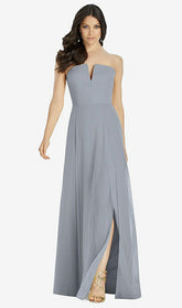 【NEW】【STYLE: 3041】ストラップレス ノッチ シフォン マキシ ドレス【COLOR: Platinum】【SIZE: 00-30W】