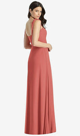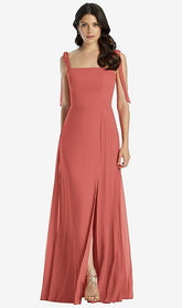 【NEW】【STYLE: 3042】タイショルダー シフォン マキシ ドレス 前面 スリット【COLOR: Coral Pink】【SIZE: 00-30W】