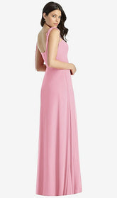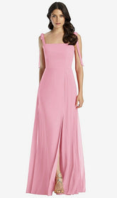 【NEW】【STYLE: 3042】タイショルダー シフォン マキシ ドレス 前面 スリット【COLOR: Peony Pink】【SIZE: 00-30W】