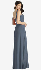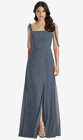 【NEW】【STYLE: 3042】タイショルダー シフォン マキシ ドレス 前面 スリット【COLOR: Silverstone】【SIZE: 00-30W】