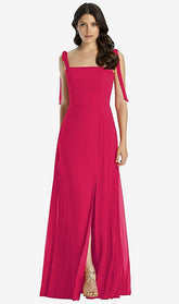 【NEW】【STYLE: 3042】タイショルダー シフォン マキシ ドレス 前面 スリット【COLOR: Vivid Pink】【SIZE: 00-30W】