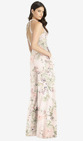 【NEW】【STYLE: 3046】Vネック バックレス プリーツ フロント ジャンプスーツ【COLOR: Blush Garden】【SIZE: 00-30W】