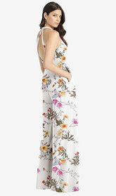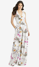 【NEW】【STYLE: 3046】Vネック バックレス プリーツ フロント ジャンプスーツ【COLOR: Butterfly Botanica Ivory】【SIZE: 00-30W】