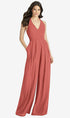 【NEW】【STYLE: 3046】Vネック バックレス プリーツ フロント ジャンプスーツ【COLOR: Coral Pink】【SIZE: 00-30W】