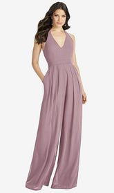 【NEW】【STYLE: 3046】Vネック バックレス プリーツ フロント ジャンプスーツ【COLOR: Dusty Rose】【SIZE: 00-30W】