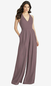 【NEW】【STYLE: 3046】Vネック バックレス プリーツ フロント ジャンプスーツ【COLOR: French Truffle】【SIZE: 00-30W】