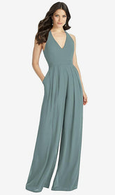 【NEW】【STYLE: 3046】Vネック バックレス プリーツ フロント ジャンプスーツ【COLOR: Icelandic】【SIZE: 00-30W】