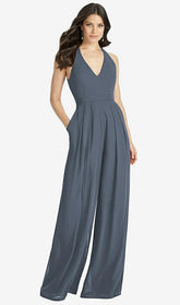 【NEW】【STYLE: 3046】Vネック バックレス プリーツ フロント ジャンプスーツ【COLOR: Silverstone】【SIZE: 00-30W】