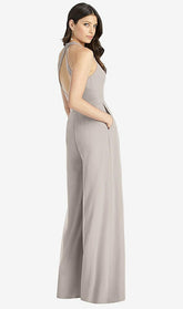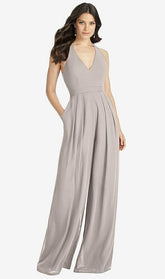 【NEW】【STYLE: 3046】Vネック バックレス プリーツ フロント ジャンプスーツ【COLOR: Taupe】【SIZE: 00-30W】
