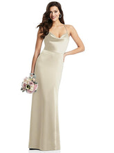 ラックスチャーミューズファブリックでフルレングスのカウルスリップドレスをスティックすると、部屋が止まり、夜を完全にあなたのものにします。 Crisscross Spaghettiストラップとゆるいドレープネックラインのディテールを備えたオープンバックは、楽しくて軽薄なスタイルを提供します。