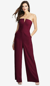 【NEW】【STYLE: 3066】ストラップレス ノッチ クレープ ジャンプスーツ ポケット付き【COLOR: Cabernet】【SIZE: 00-30W】