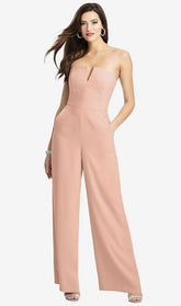 【NEW】【STYLE: 3066】ストラップレス ノッチ クレープ ジャンプスーツ ポケット付き【COLOR: Pale Peach】【SIZE: 00-30W】