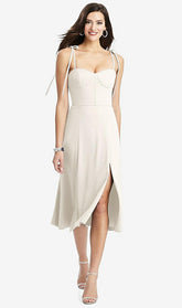 【NEW】【STYLE: 3069】Bustier CREPE MIDI ドレス 調整可能 弓 ストラップ【COLOR: Ivory】【SIZE: 00-30W】