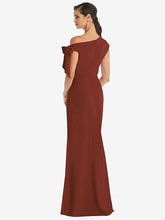【NEW】【STYLE: 3073】オフショルダー ネクタイ 詳細 トランペット ガウン 前面 スリット【COLOR: Auburn Moon】【SIZE: 00-18W】