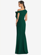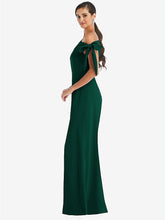 【NEW】【STYLE: 3073】オフショルダー ネクタイ 詳細 トランペット ガウン 前面 スリット【COLOR: Hunter Green】【SIZE: 00-18W】