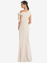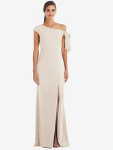 【NEW】【STYLE: 3073】オフショルダー ネクタイ 詳細 トランペット ガウン 前面 スリット【COLOR: Oat】【SIZE: 00-18W】